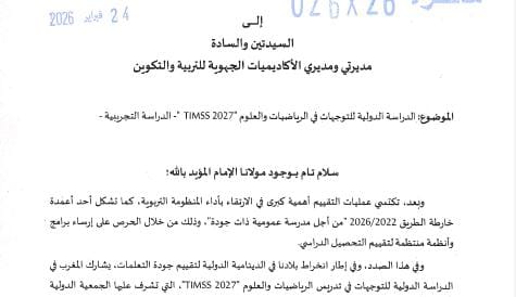 تشكل الدراسة الدولية للتوجهات في الرياضيات والعلوم TIMSS 2027 محطة تربوية مهمة في مسار تطوير المنظومة التعليمية بالمغرب، خاصة في ظل التحولات المتسارعة التي يعرفها التعليم عالميًا. وتندرج هذه المشاركة ضمن رؤية وطنية تروم الارتقاء بجودة التعلمات، وتعزيز تنافسية المدرسة المغربية، وترسيخ ثقافة التقييم الموضوعي المبني على المعايير الدولية.