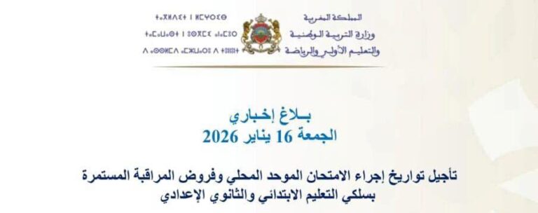 بلاغ وزارة التربية الوطنية بخصوص اختبارات المرحلة الثالثة من الأسدوس الأول والامتحان الموحد المحلي بالتعليم الابتدائي – دورة يناير 2026 مقدمة تحتل الامتحانات الإشهادية والاختبارات المرحلية مكانة مركزية في المنظومة التربوية المغربية، لما لها من دور أساسي في تقويم التعلمات،…