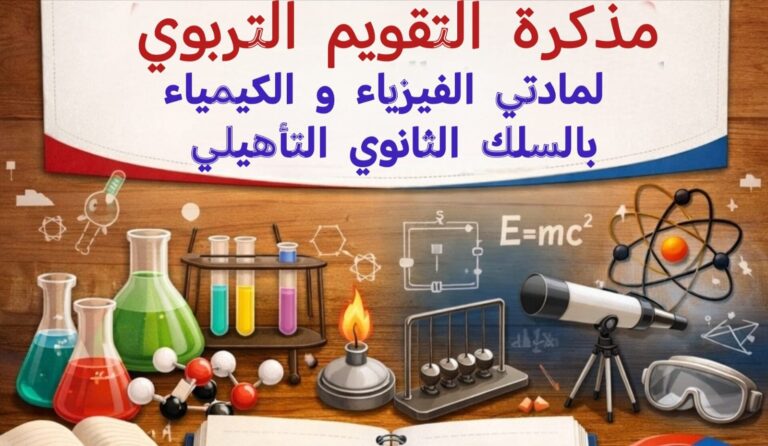 مذكرة التقويم التربوي لمادتي الفيزياء والكيمياء بالسلك الثانوي التأهيلي مذكرة التقويم التربوي لمادتي الفيزياء والكيمياء بالسلك الثانوي التأهيلي مقدمة يشكل التقويم التربوي أحد الأعمدة الأساسية في المنظومة التعليمية المغربية، لما له من دور محوري في قياس مدى تحقق التعلمات، وتتبع…