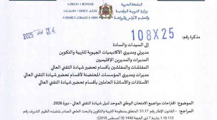 آليات إعداد مواضيع الامتحانات الخاصة بشهادة التقني العالي في المغرب – رؤية تنظيمية لتجويد منظومة التقييم تعتبر عملية إعداد مواضيع الامتحانات الإشهادية بالمغرب واحدة من أهم المحطات في المسار الدراسي والتكويني للمتعلمين، خاصة في التخصصات التقنية والتكوينية التي تنتهي بمنح…